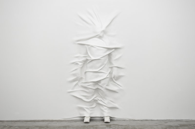 『NANZUKA』の“Architecture Anomalie”はそのタイトルの通り、「科学的常識、原則からは説明できない逸脱、偏差を起こした現象を含む構造」をテーマとした新作の立体作品を展示。浸食した壁、壁と同化した布、身体性を連想させるアートピースなどは、空間と作品との関係性、視覚認識と身体感覚との関係性といったテーマに対するArshamの関心と研究が反映されており、見るものを答えのない非日常へと誘う。