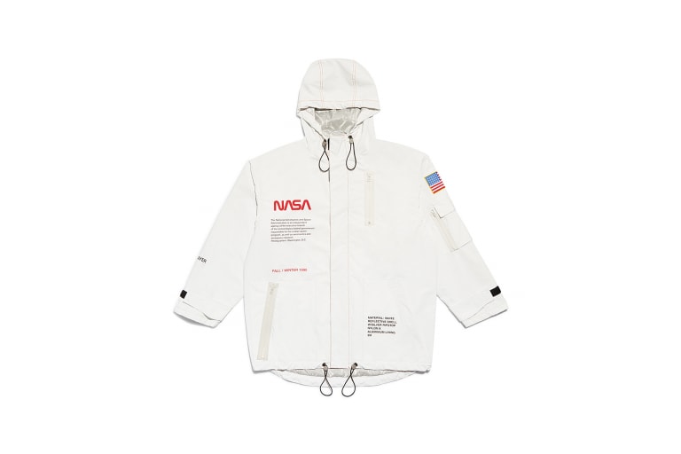「NASA」とのコラボレーションでは、同連邦機関を象徴するホワイト、レッド、ブルーの3色を用いて、1975年当時のロゴと星条旗のパッチを随所に配置。また、フーディ、セーター、スウェットパンツ、Tシャツなどには“BASE LAYER”や“FALL/WINTER 1990”というテキストとともに、「NASA」の組織概要がプリントされている。その中でも宇宙服を彷彿させるアウターやシルバーコーティングを施したデニムジャケットは、2010年代の名作ストリートウェアとして後世に語り継がれるポテンシャルを秘めた人気の筆頭候補だろう。