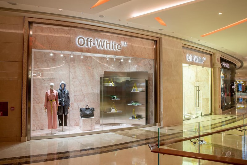 2018年第2四半期の人気ブランドランキングで第2位につけた〈Off-White™(オフホワイト)〉が、その顧客層をさらに拡大すべく、マカオに新店舗をオープンした。大理石を贅沢に使用し、旗艦店の中で最もラグジュアリーな様相となった店内は、床一面にVirgil Abloh(ヴァージル・アブロー)らしい幾何学模様をデザイン。アパレルからスニーカー、ラゲージ類、その他アクセサリーなど、ブランドのフルコレクションがディスプレイ/ラッキングされた奥行きを感じる店内の中央には、『Kaikai Kiki Gallery』で開催された“PAY PER VIEW”でも畳の部屋に設置されていたワイヤーフレームの椅子2脚とテーブルが鎮座している。