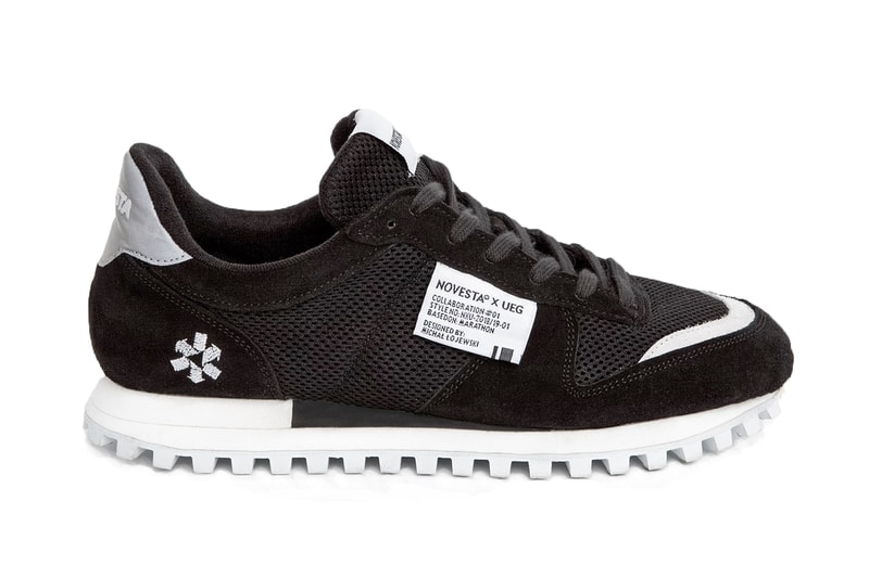 〈UEG〉にとって、2016年の〈PUMA(プーマ)〉以来となる他ブランドとのコラボとなる今回の〈NOVESTA〉とのチームアップ。ベースモデルには、1950年代から残るクラシックなマラソンシューズを改良したモデルで、1988年にはチェコスロバキア代表の五輪選手のために生まれたマラソンシューズを採用。その昔ながらのクラシカルで普遍的かつ現代のいても充分に通用するシルエットに焦点を当て、ブラックカラーを基調にホワイトカラーでアクセントをプラス。ヒール部分には反射素材を採用し、1970年代の東欧シーンや1980年代のスタイルを完璧な形でモダンに昇華させた、細部までこだわり抜かれた1足に仕上がっている。気になる発売日は7月下旬、サイズ展開は36~45、価格は29,000円(税抜)。