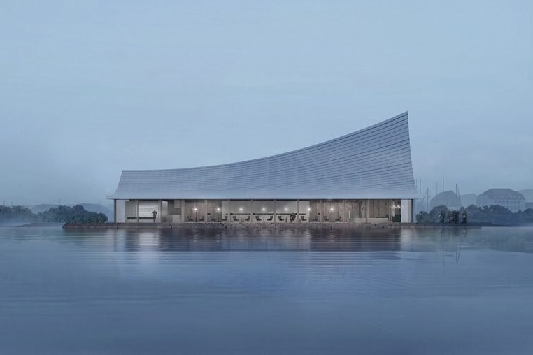 建物自体は建築物としてシンプルな造りをしており、曲がりくねった廊下やミステリアスな箇所はなく、シンプルな1つの長方形の空間は訪れる人々の脳裏に無限の可能性が広がるような余白を残したスペースに。興隆湖エリアの東側に位置するこの建物は12m x 39mの長方形を平面とし、最も高い位置で16m、最も低い位置で3mの美しいラインを描く屋根が特徴だ。