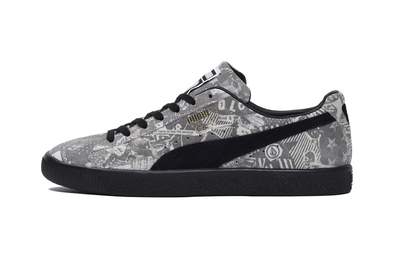 今回のトリプルコラボでは、2020年に東京五輪の追加種目となったことでも今一度注目を集めているスケートボードにフォーカス。〈Volcom〉らしい総柄グラフィックをスケーターが好むスウェード素材のアッパーに大胆に落とし込んだモデル(13,000円+Tax)と、スケートをする上で磨耗の激しい部分に補強パーツとしてラバーを施し、アイレットベースをギリータイプに変更するなど細部にもこだわり抜いたレオパード柄が映えるパンクなモデル(14,000円+Tax)からなる、不朽の名作PUMA CLYDE(プーマクライド)をベースにした2モデル計4色がそのラインアップに並んでいる。両モデルともシュータンラベルには本プロジェクトのために製作された〈Volcom〉が鎮座し、ヒールにもお馴染みの〈Volcom〉ロゴが存在感を放っている。