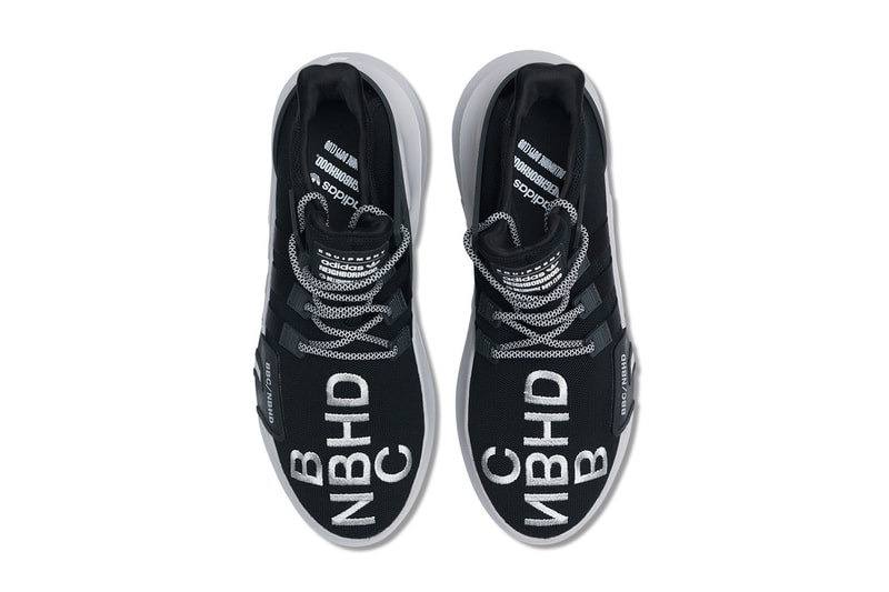 お馴染みの〈BBC〉宇宙飛行士と〈NEIGHBORHOOD〉が用いるスカルを融合させたルックスが印象的な「MEDICOM TOY」のBE@RBRICK(ベアブリック)は、背面に日米の国旗をあしらわれたスペシャルモデル。また、今コラボ最大の目玉といっても過言ではない〈adidas〉とのコラボレーションでは、近未来的なシルエットのEQT Bask ADVを採用。〈NBHD〉と〈BBC〉のアルファベットを交差させた刺繍がトゥ部分に大きく施されている。