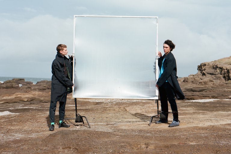 本コレクションでは、8つのセットアップにフォーカスし、移り変わる気候の変化に対応可能なテーラードピースが多くラインアップ。なかでも今季のメインといえるアイテムには、海風に晒されたキャンバス地のような合繊素材とステッチを効かせたデザインが印象的なジャケットをはじめ、軍艦の船員が着用していたワークウェアをモチーフにしたというショールカラージャケット、耐久撥水加工を施したポリエステルツイルを用いた軽量のショートジャケット及びパンツなどが挙げられる。その他にも、ダウンコートやGORE-TEX®️を採用したダッフルコート、フリースジャケット、ダウンセーター、ベストなどアウターからインナーまで機能的で天然素材を用いた多くのアイテムが揃う。